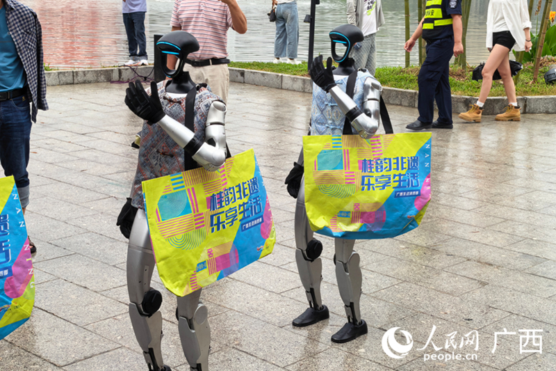 南宁青秀山、桂林漓江、北海银滩……AI机把广西风光“搬”到现场,AI机械人跟着竹竿的节拍矫捷腾跃。“一键逛广西”笼盖吃住行逛购娱全流程。